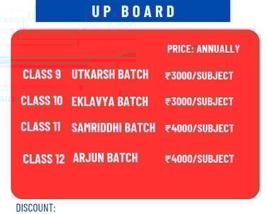 Fee Details for UP Board Academic Coaching classes for class 9, 10, 11 & 12
