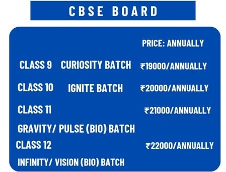 Fee Details for CBSE Board Academic Coaching classes for class 9, 10, 11 & 12.